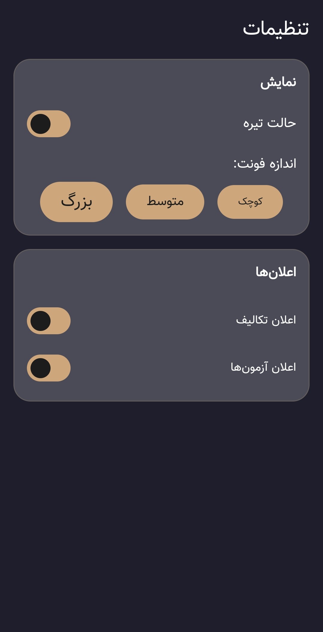 ارسال اعلان و یادآوری آزمون ها و تکالیف